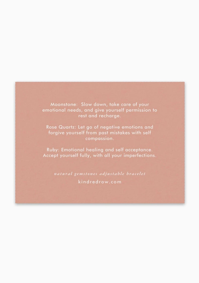 A gentle reminder to love yourself a little more every day. This everyday bracelet blends natural healing stones with delicate metal accents, creating a wearable symbol of inner peace and personal strength. The perfect piece to uplift your energy with a touch of self-love. Wear it solo or layered—just don’t forget what it stands for.