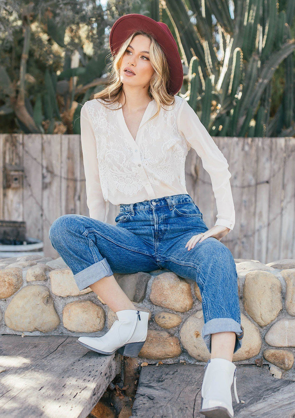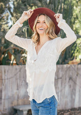 Shop The SaleA style so sweet, we had to bring it back! Our ultra-pretty lace button-up top features a flattering v-neckline, a romantic lace overlay, and a chic banded collar. Whether you tuck it into vintage denim or a skirt, this bohemian blouse will add a feminine touch.