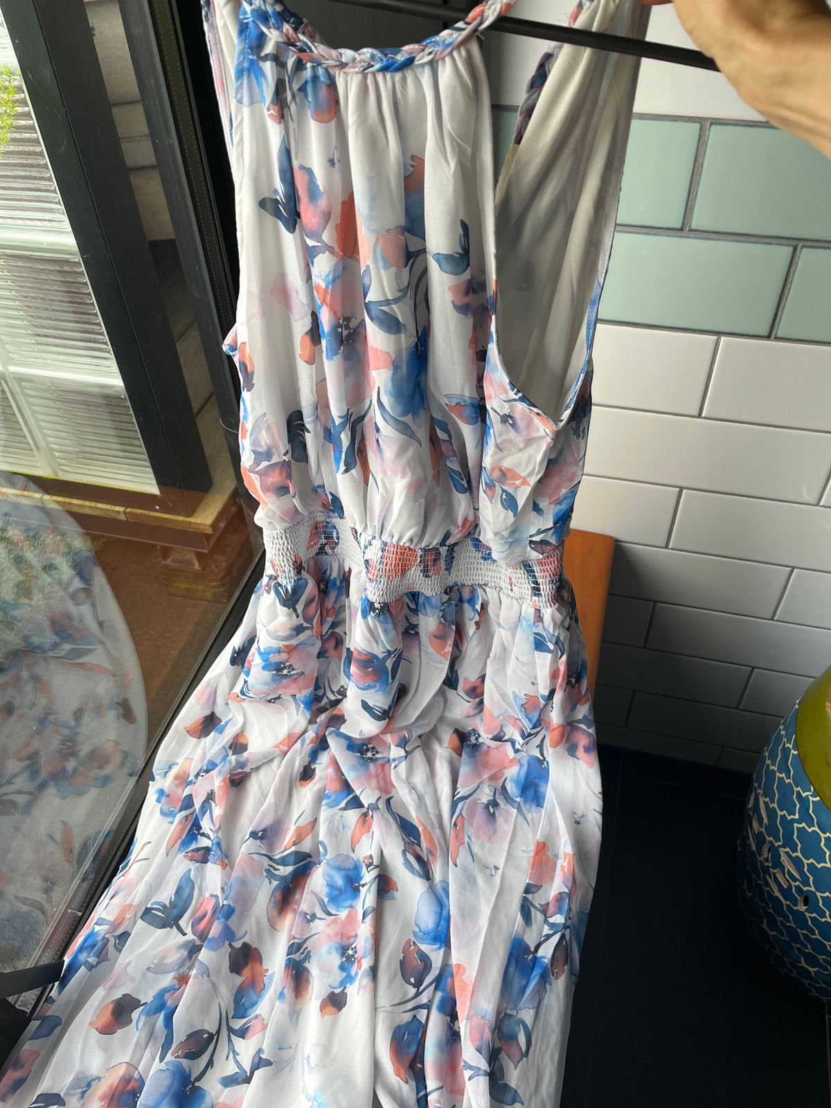 Shop The SaleA dress that demands to be seen! Our lightweight maxi dress is designed in a dreamy floral print. Featuring a braided halter neckline, a back keyhole with adjustable tie, and a smocked elastic waist for definition.