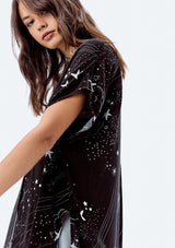 Shop NowFor the dreamers, the horoscope readers, and the believers of star-power... this top is for you! This versatile, stardust printed button-down tunic top can be tied up in the front and left long in the back for a flattering and unique look, or leave it long and wear it over a pair of leggings for a cute, casual look!