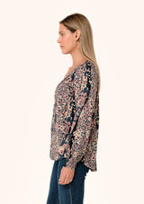 A classic long sleeve bohemian blouse in a blue and pink mixed floral print.