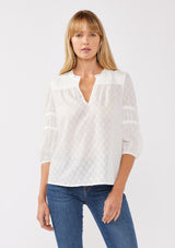 ![[Color: White] A front-facing image of a blonde model wearing a bohemian white blouse featuring a stripe clip jacquard pattern. This lightweight blouse includes a pintuck yoke, 3/4 length sleeves with tiered details, and a flattering split v-neckline. Ideal for casual outings, it’s a must-have addition to any boho wardrobe.](http://www.shoplovestitch.com/cdn/shop/files/I-15488W-SXH_WHITE_160x.jpg?v=1729692566)