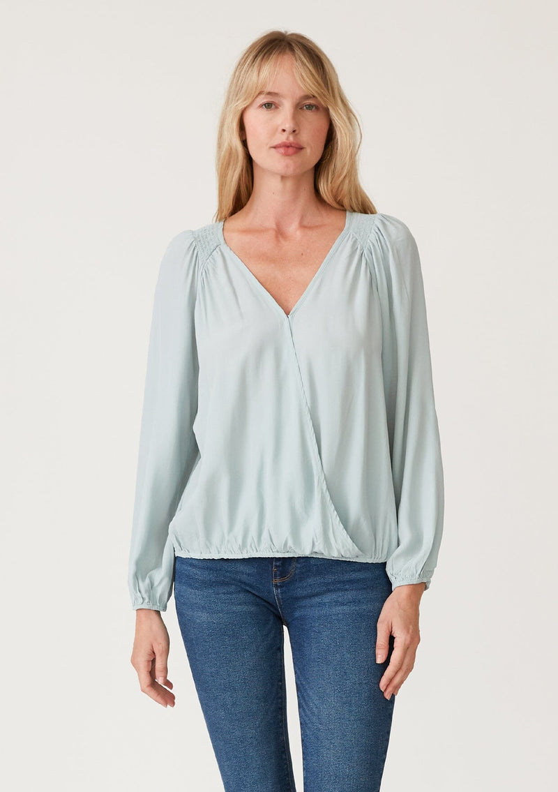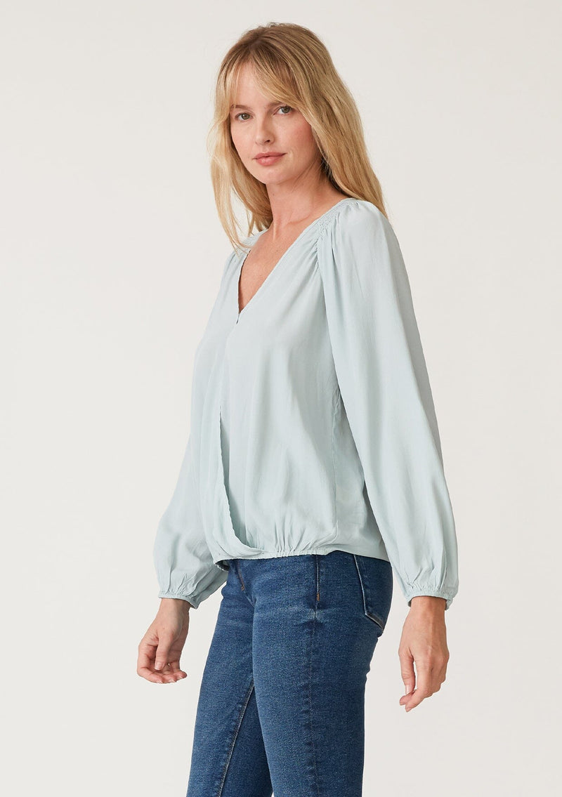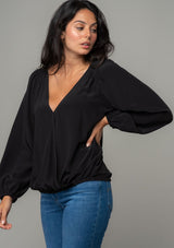 A not-so basic addition to your basics wardrobe, our flowy bohemian blouse is designed in a soft and silky crepe. Featuring voluminous long sleeves and a sexy surplice v-neckline with hook & eye closure.