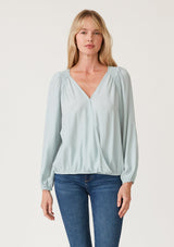 ![[Color: Sky] A front facing image of a blonde model wearing a soft and silky light blue bohemian blouse with voluminous long sleeves, a plunging surplice v neckline, and an elastic front waist.](http://www.shoplovestitch.com/cdn/shop/files/I-13993W-RPL_SKY_160x.jpg?v=1748481879)