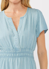 This easygoing Tencel mini dress combines comfort and style in the most effortless way. With short sleeves, a smocked waist, and a tiered skirt, it offers a flattering silhouette you'll feel comfortable in. Whether you slip on a wedge or flat, its relaxed fit will keep you cool and looking effortlessly laid-back through the warmer season.