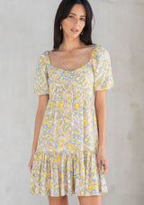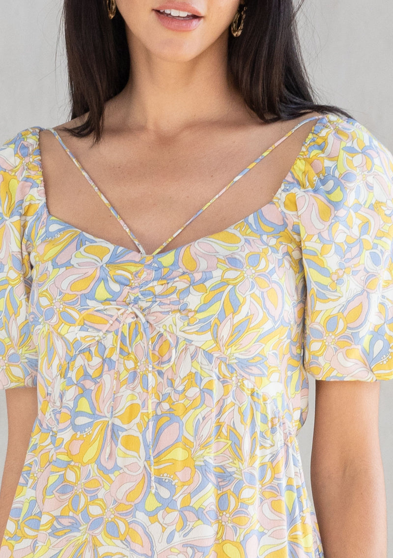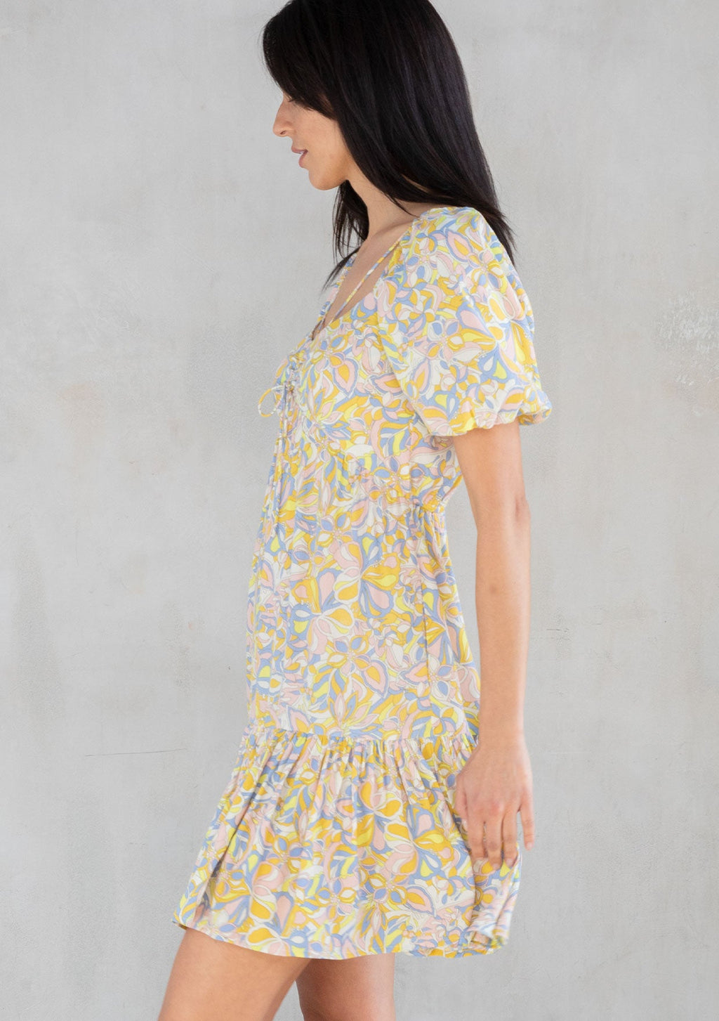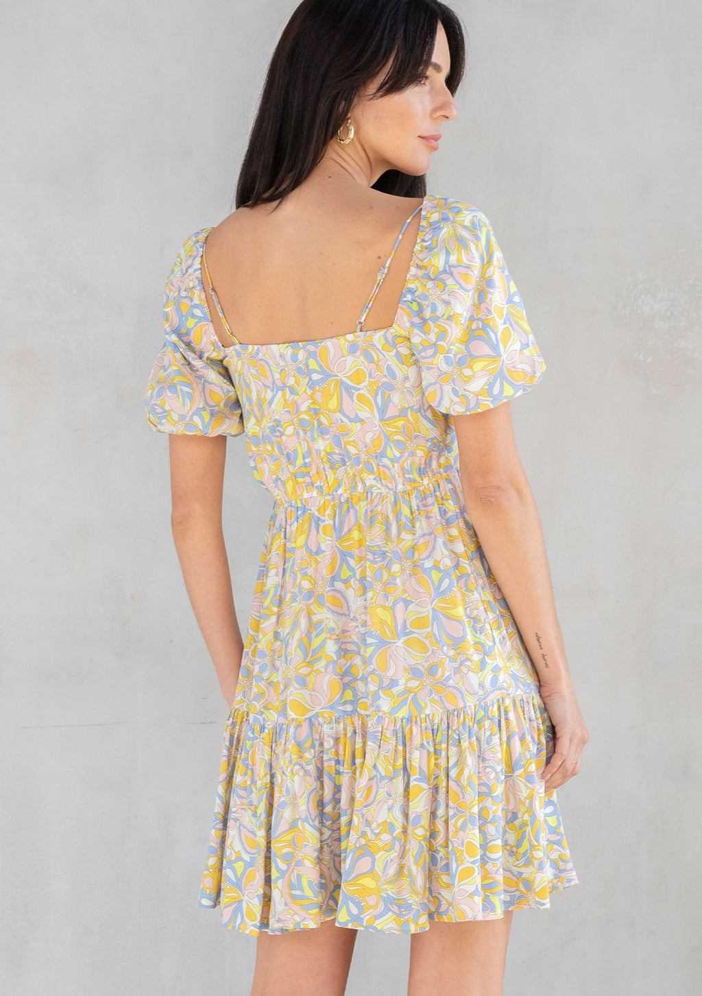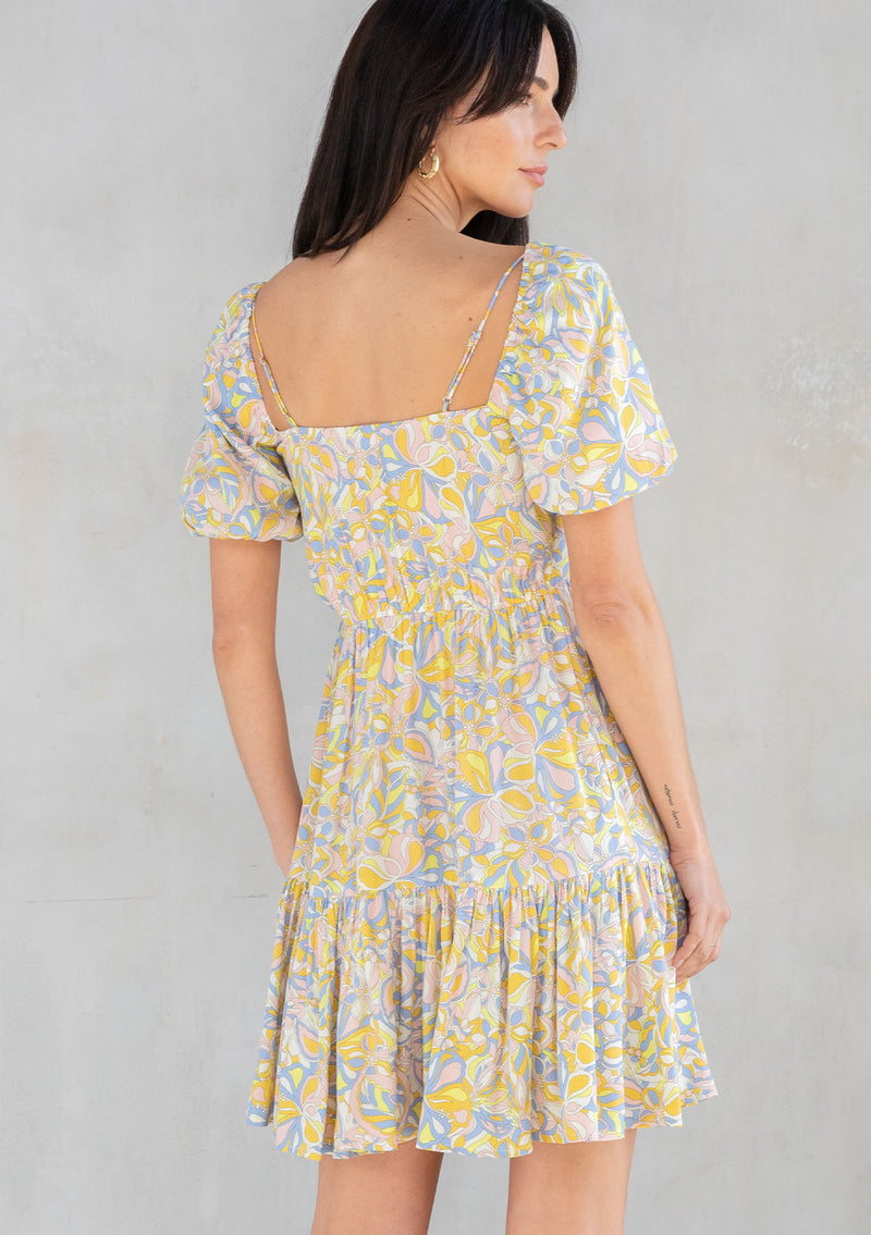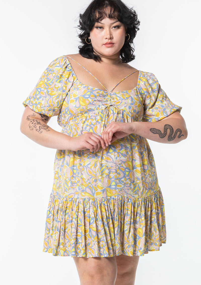 Shop NowFor the vintage-lovers, our dreamy mini dress is designed in a 70s-inspired floral print. Featuring a flattering empire waist, a strappy neckline detail, and a flowy tiered skirt. The lined puff sleeves add extra volume and charm.