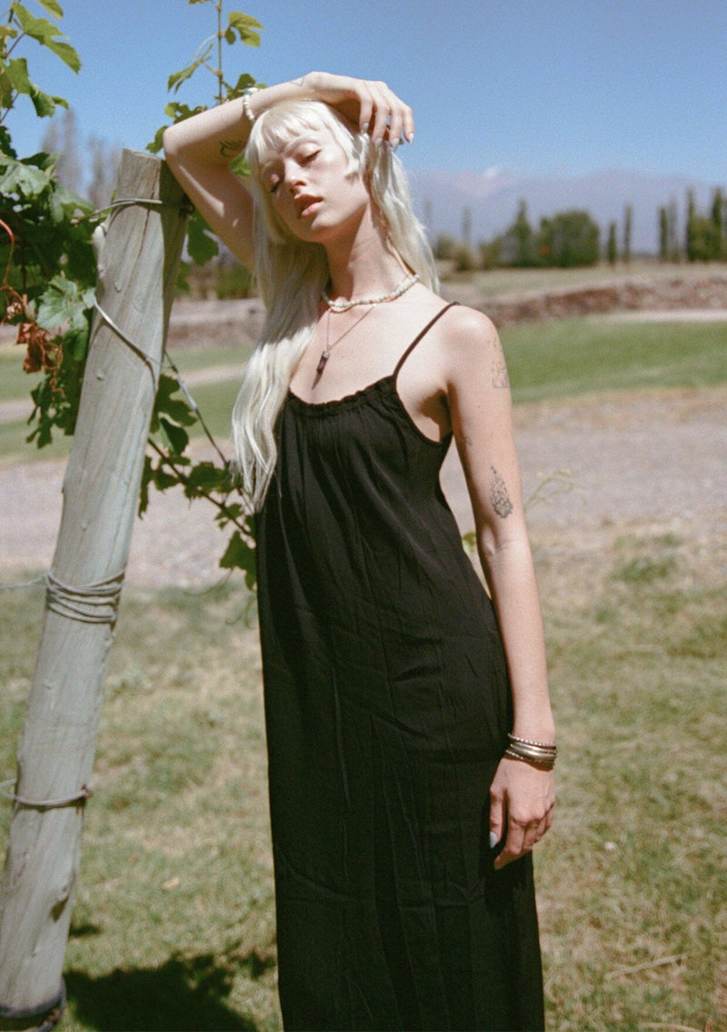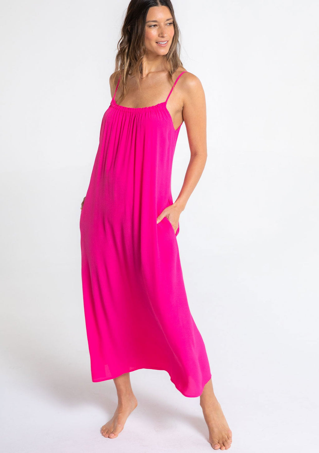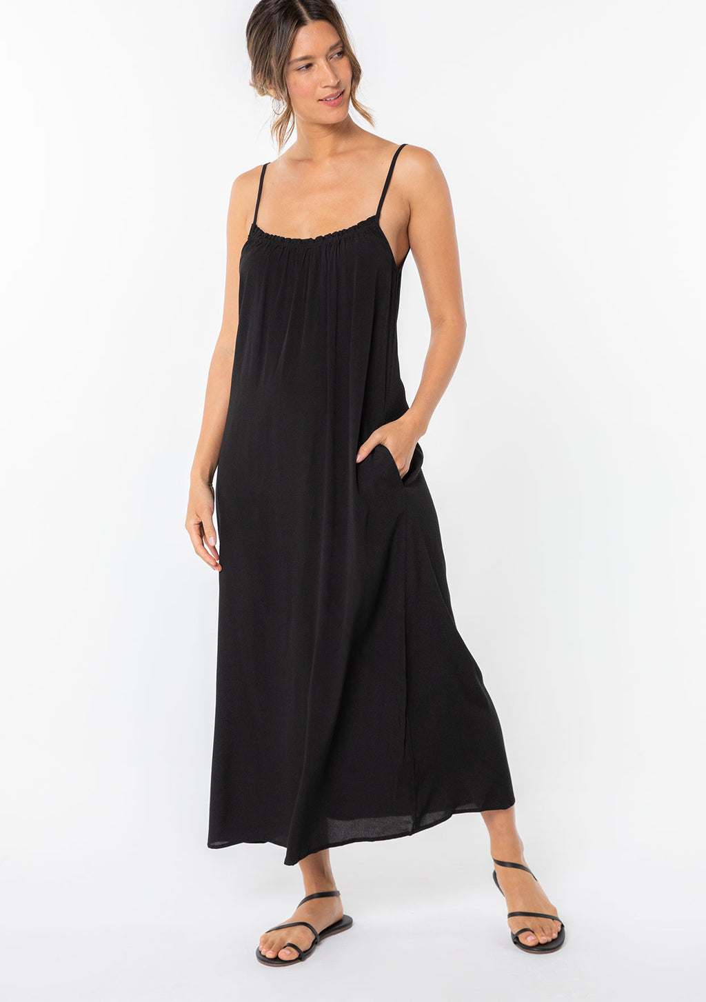 Shop The SaleFor those who like to keep it simple, our timeless maxi dress is the versatile style you've been looking for. Featuring a ruffle-trimmed neckline, adjustable spaghetti straps, and side pockets. The v-back with a peek-a-boo cutout adds a flirty touch to this easy throw-on-and-go style.