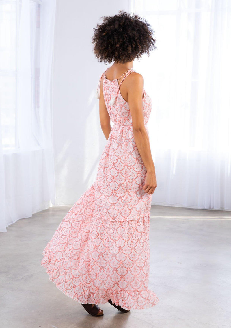 Shop NowA Summer-ready maxi dress in a bohemian block floral print. Featuring adjustable shoulder tassel ties, a ruffled scooped neckline, and a waist-defining tassel tie belt. The perfect cotton dress for wherever warm weather takes you!