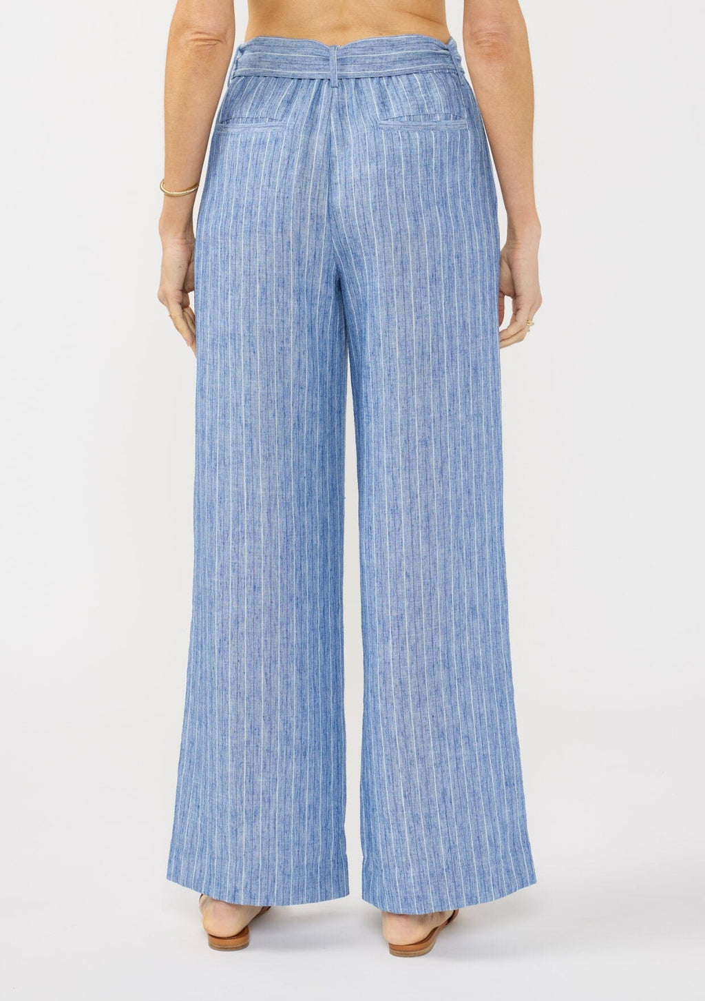 A classic striped pant with an adjustable waist belt.