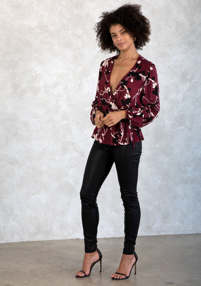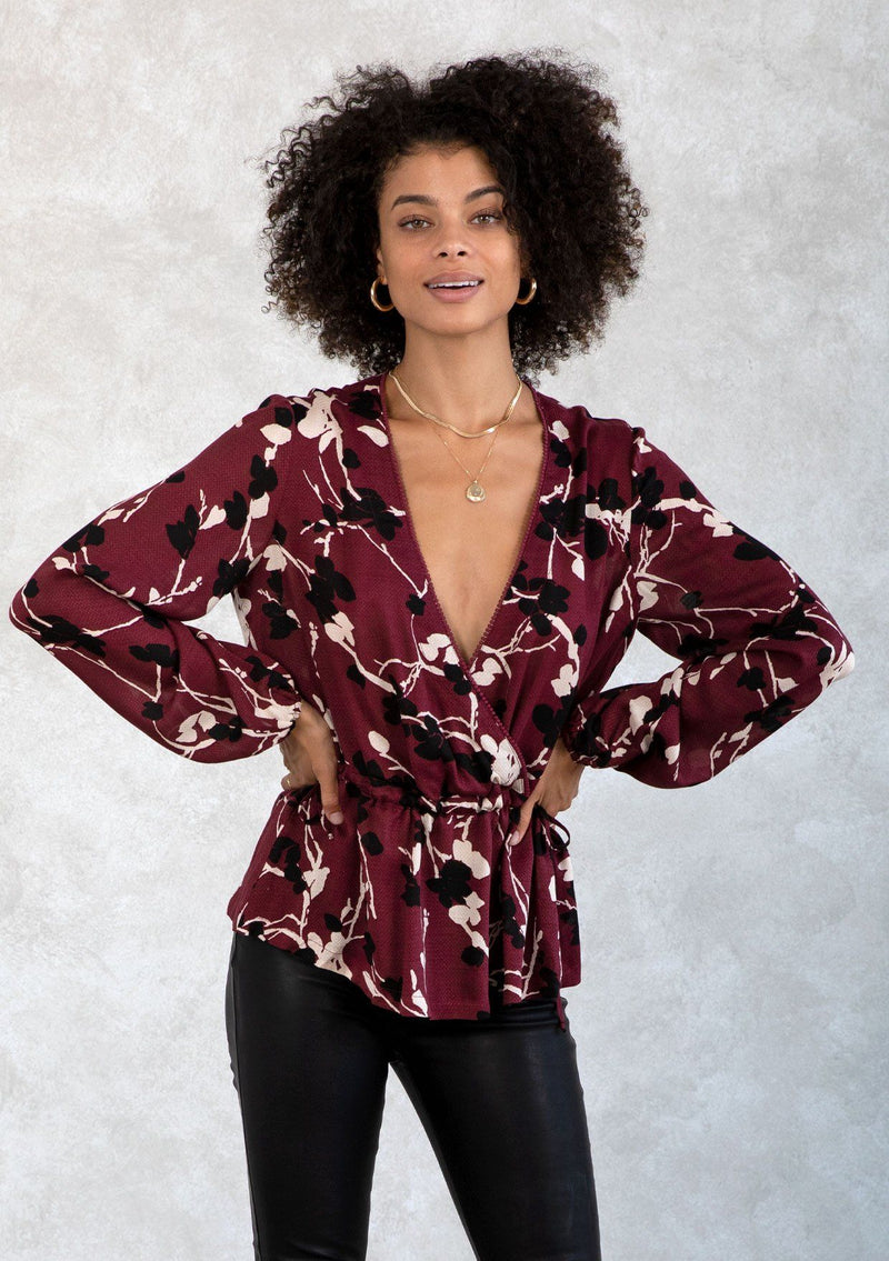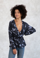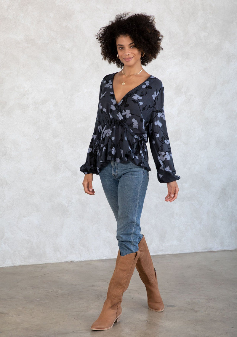 Add a touch of whimsy to your outfit with our mini-pom trimmed surplice top. Designed in a blossom floral print, this effortlessly chic blouse features long voluminous sleeves and an adjustable drawstring waist with side ties. Pair it with your favorite vintage denim for a classic bohemian vibe.