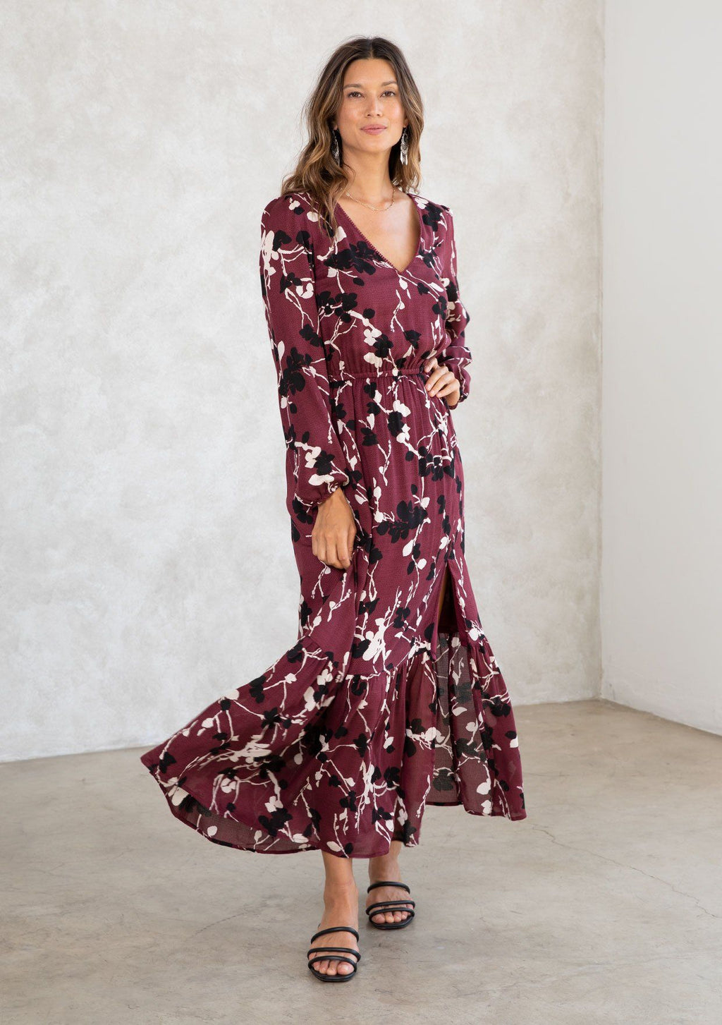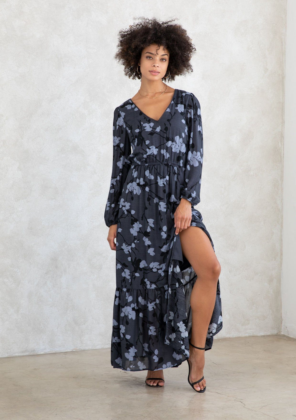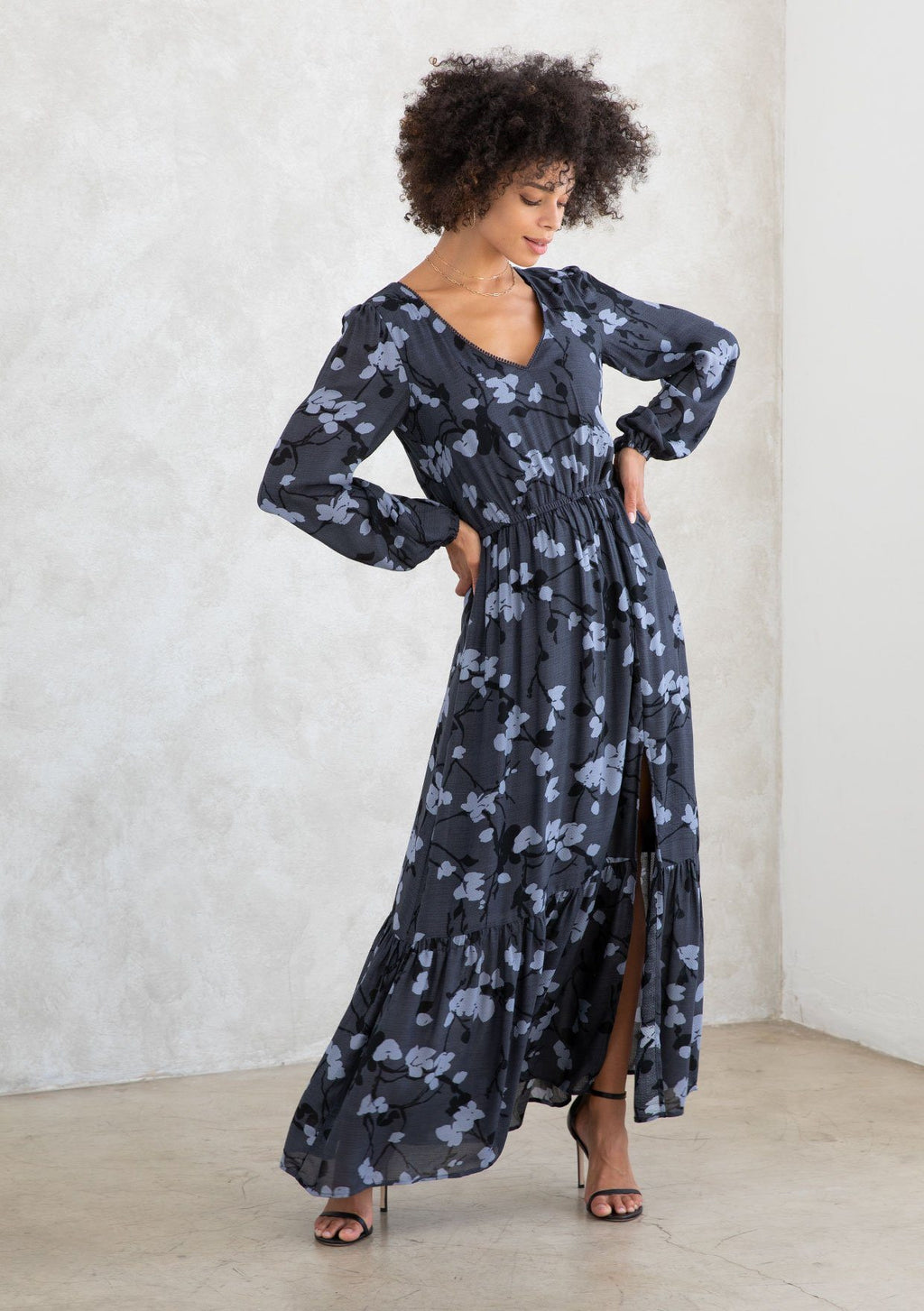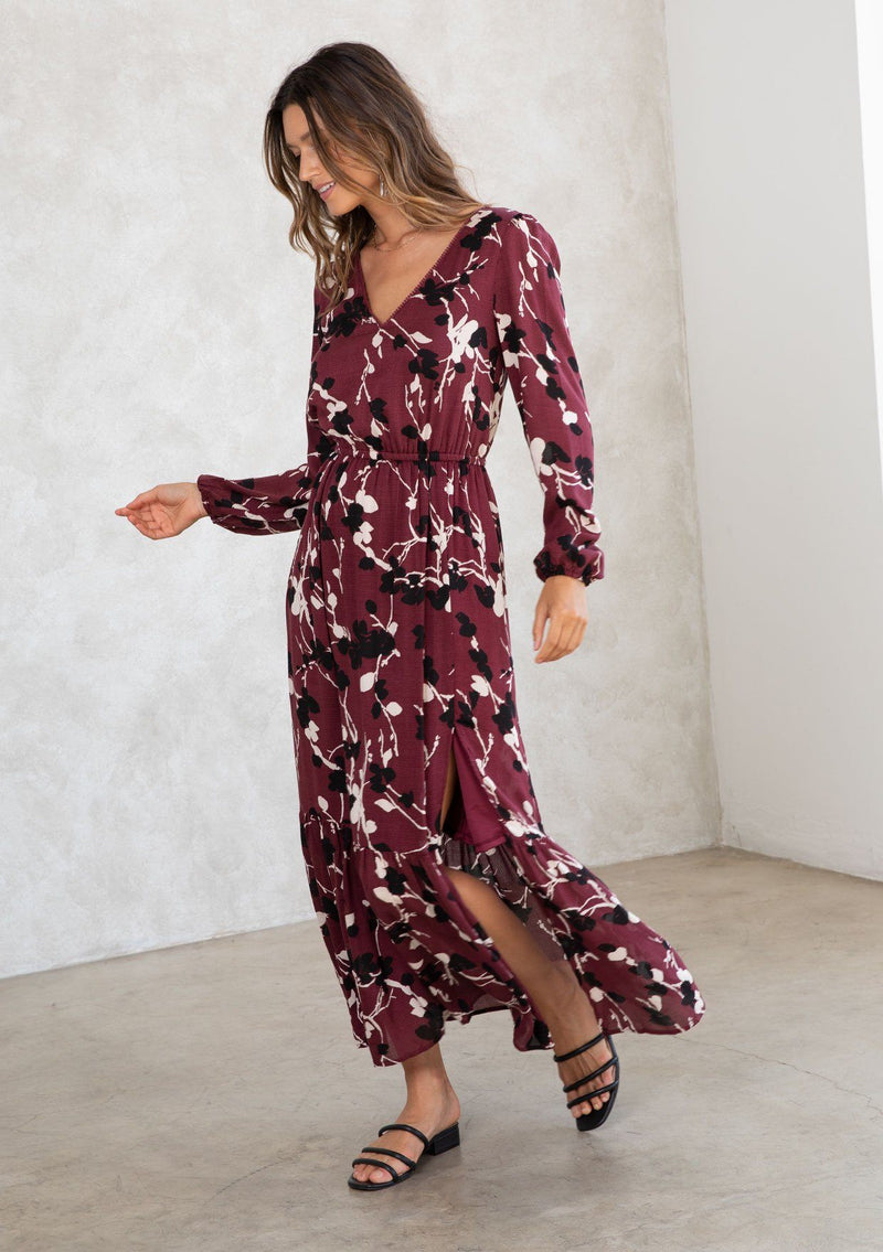 Shop NowWhatever the occasion, add a touch of effortless charm with our ultra-flowy bohemian maxi dress. Designed in a blossom floral print, this Fall-ready maxi dress features long voluminous sleeves, a delicate mini pom-trimmed v-neckline, and an elastic waist for definition. The sexy side slit adds a peek-a-boo moment for your favorite Fall boots.