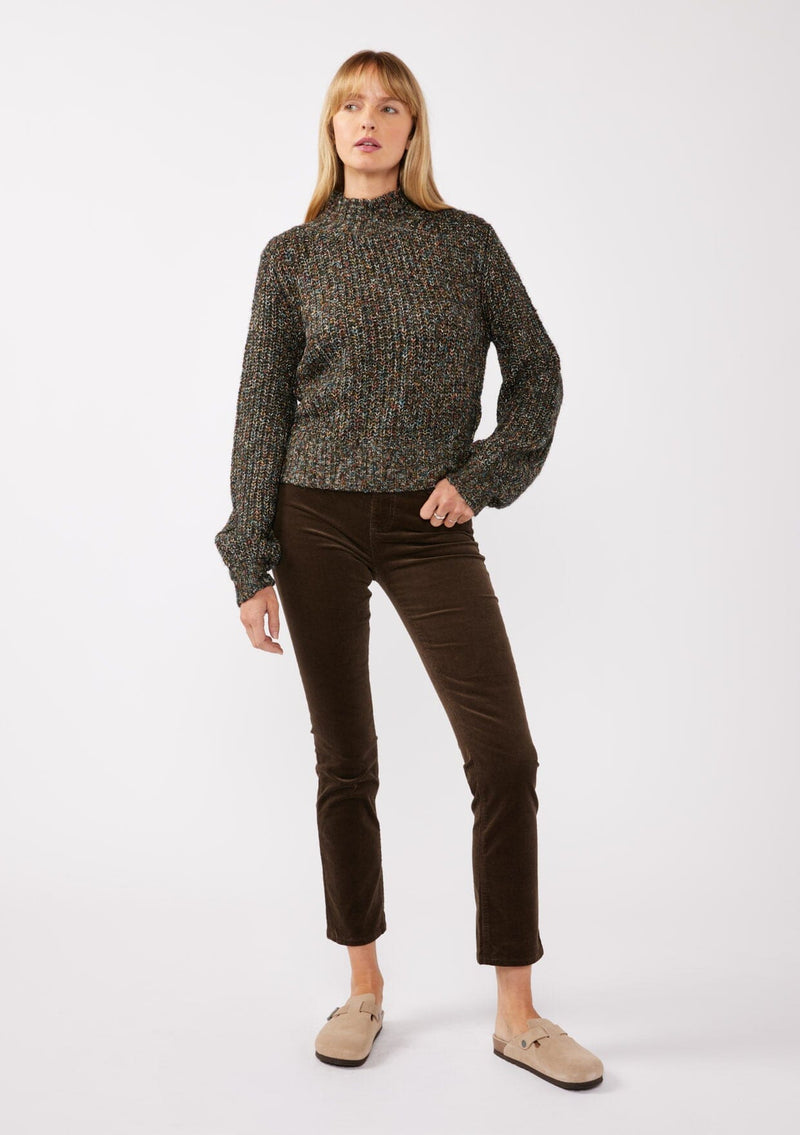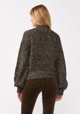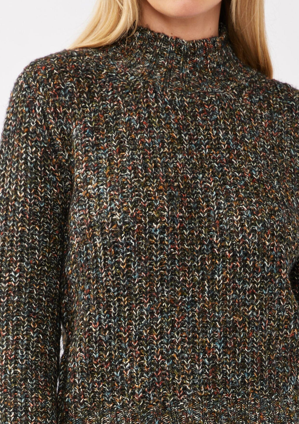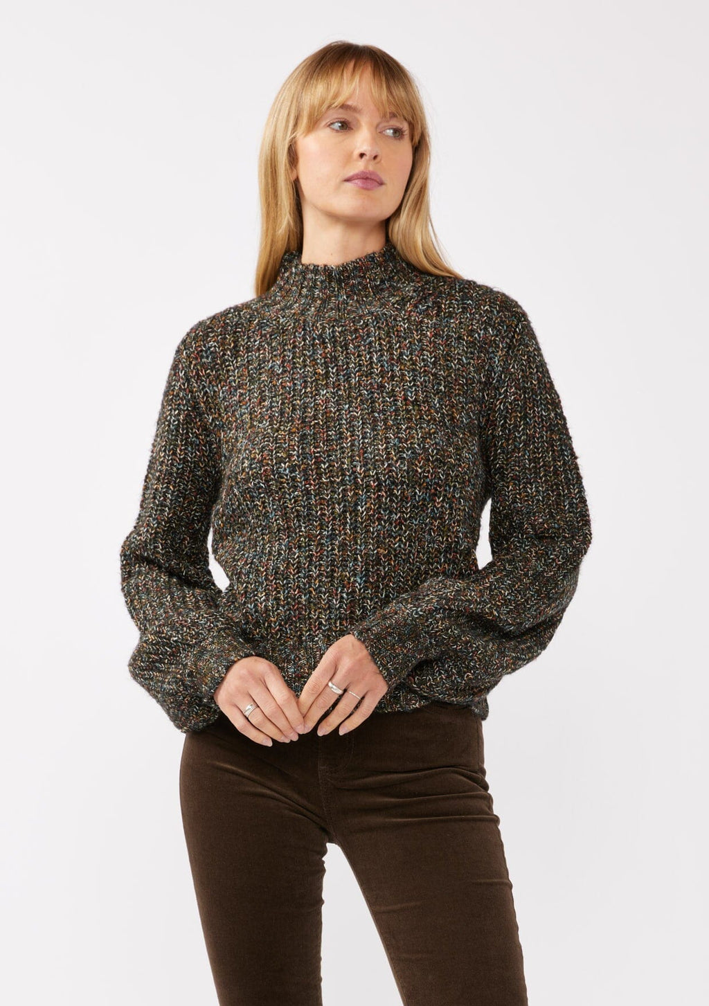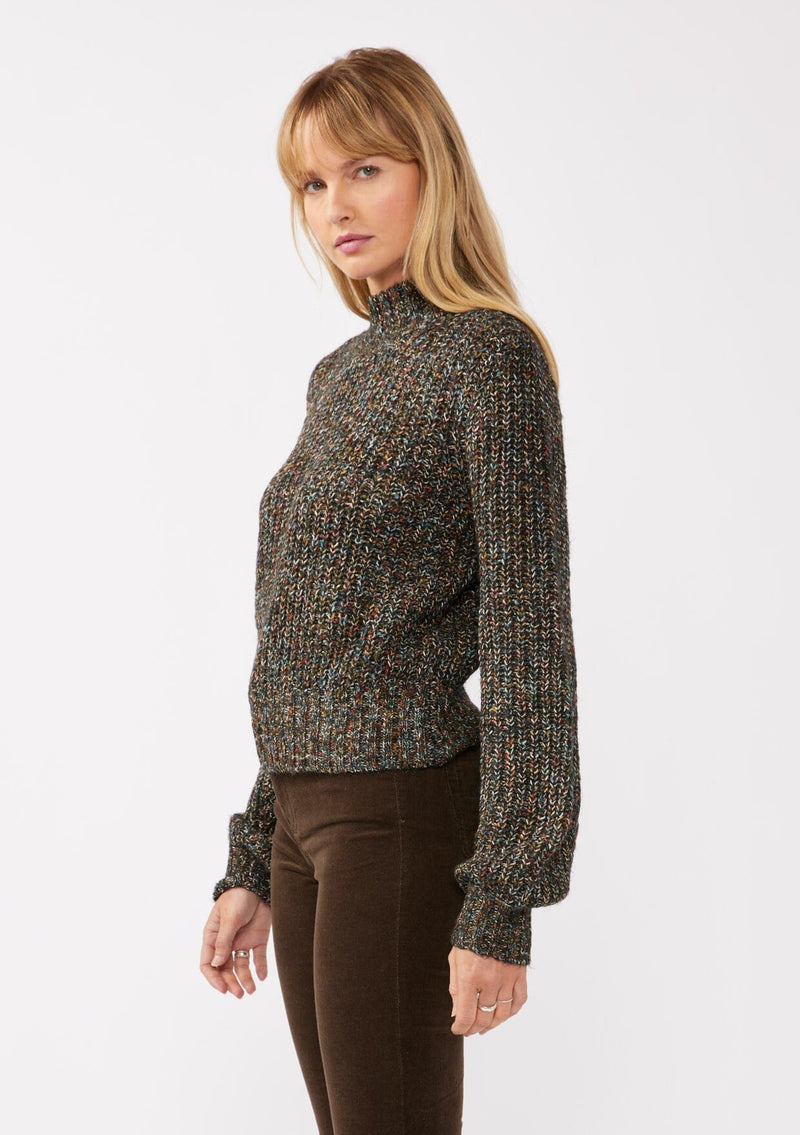 Whether you're at your desk or attending a holiday party, you'll shine in our gorgeous multi-color chunky knit sweater. A cozy pullover featuring a warm mock neck and a flattering voluminous sleeve.