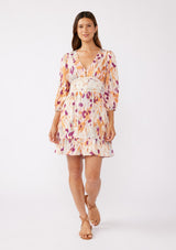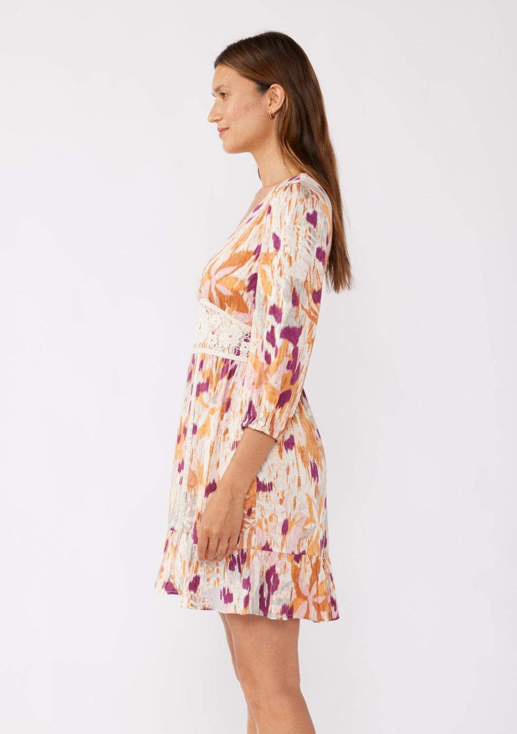 ![[Color: Natural/Plum] A brunette model wearing a bohemian mini dress in an orange and purple abstract ikat print. Featuring ¾ length sleeves, a v-neckline, ruffle trimmed skirt, and floral lace details. A relaxed fit style designed for the Fall season.](http://www.shoplovestitch.com/cdn/shop/files/071024_LOVESTITCH_283_160x.jpg?v=1722612482)