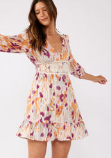 ![[Color: Natural/Plum] A back image of a brunette model wearing a bohemian mini dress in an orange and purple abstract ikat print. Featuring ¾ length sleeves, a v-neckline, ruffle trimmed skirt, and floral lace details. A relaxed fit style designed for the Fall season.](http://www.shoplovestitch.com/cdn/shop/files/071024_LOVESTITCH_284_160x.jpg?v=1722612204)