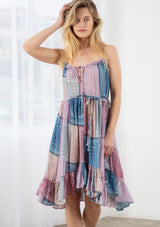 Shop NowBorrowing from our favorite classic vintage bandana, our lightweight and flowy mini dress is designed in a patchwork paisley print. With a thin adjustable strappy tie back, a ruffled tie-neck with a keyhole detail, and a tiered skirt for added shape and movement. The perfect bohemian Summer dress!