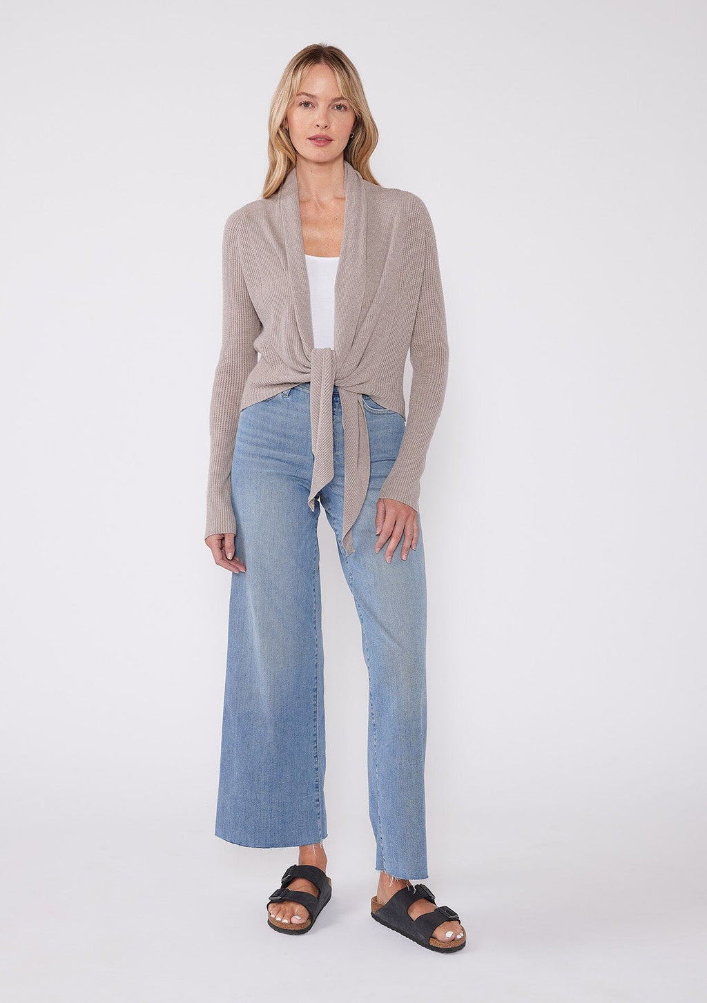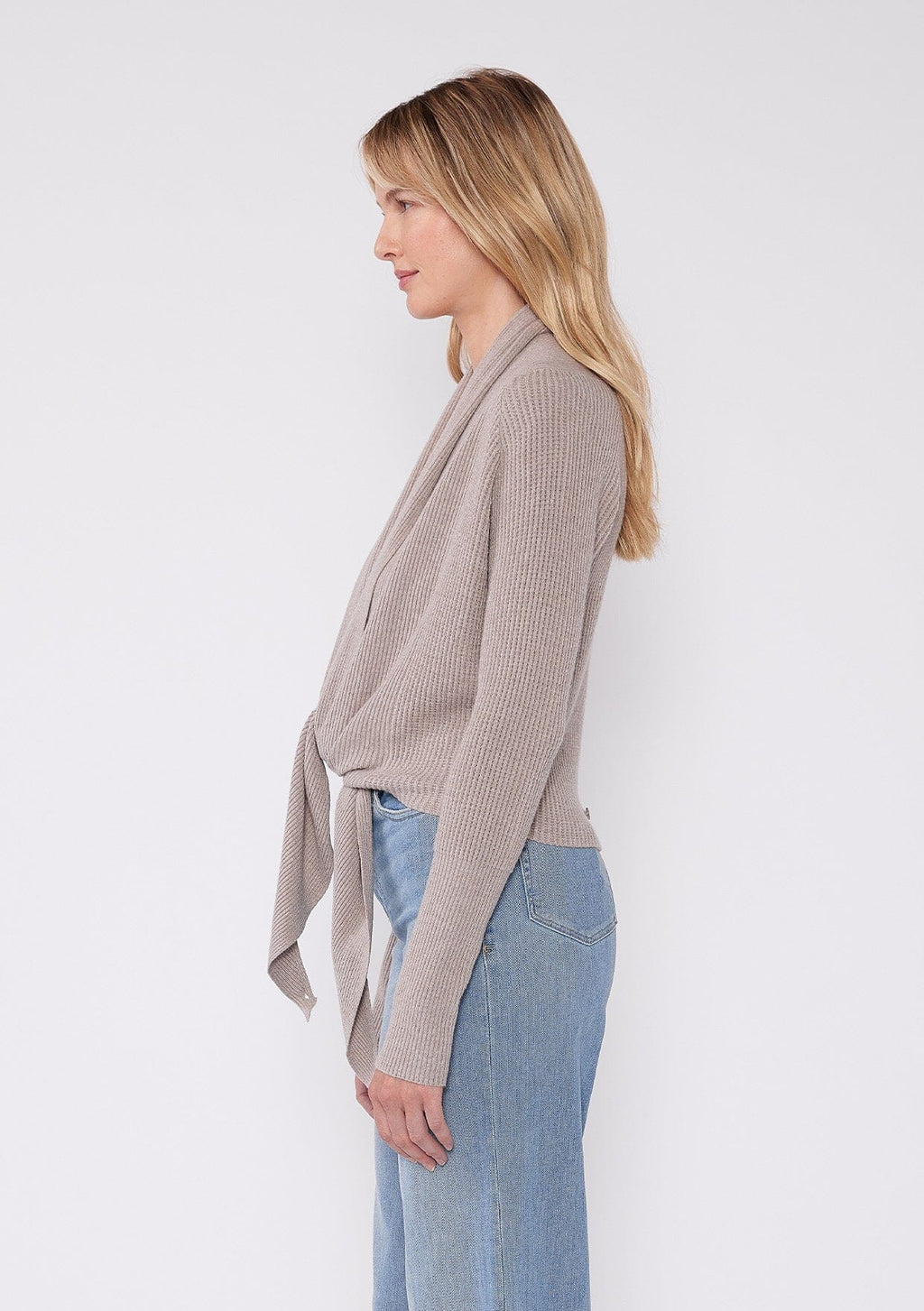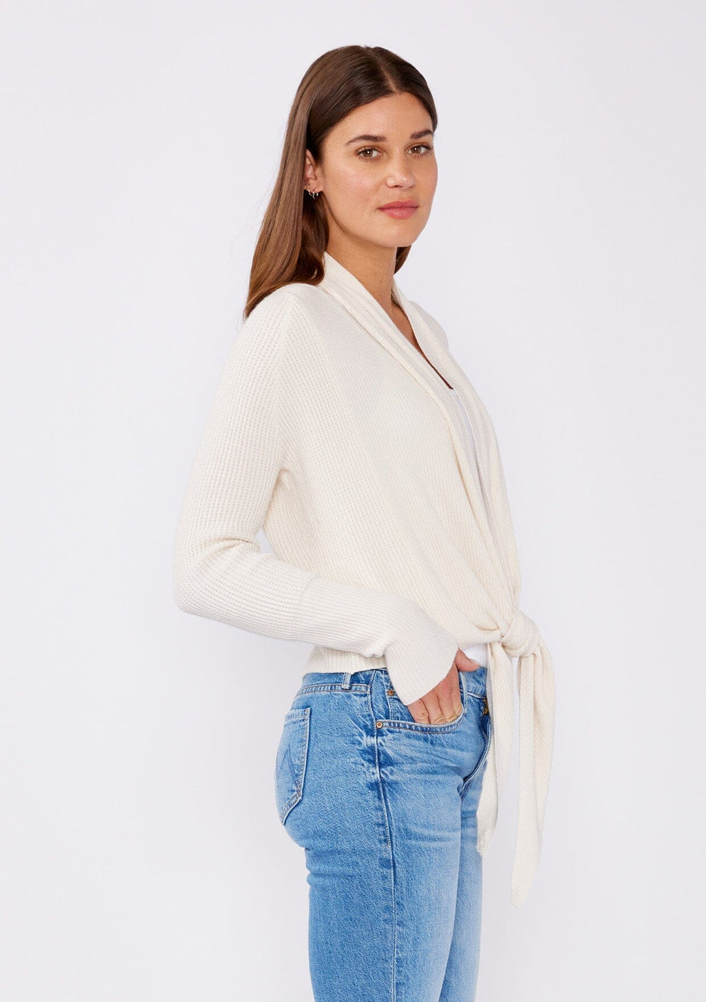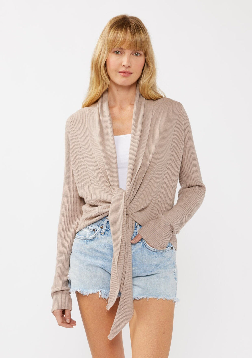 Tie it, wrap it, or let it hang loose - our versatile tie-front sweater can be styled in multiple ways. Designed in an ultra-soft waffle knit with contrast ribbed trim, this must-have cardigan features slim-fit long sleeves and extra-long front ties with an optional button closure at the back. If you're looking for a timeless staple sweater to add to your capsule collection, look no further!