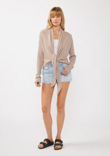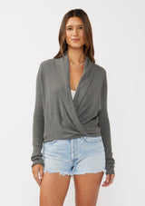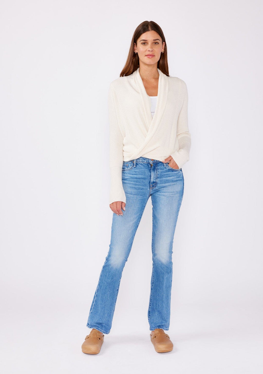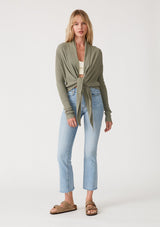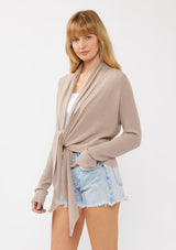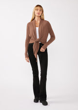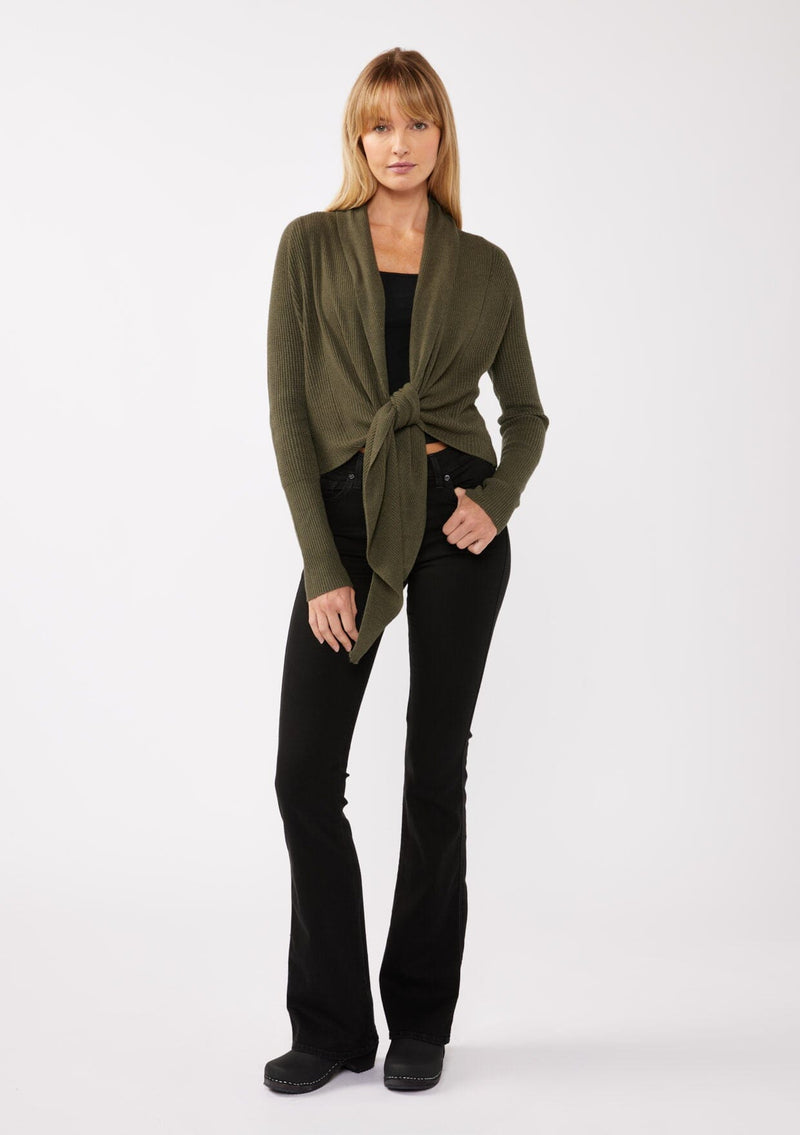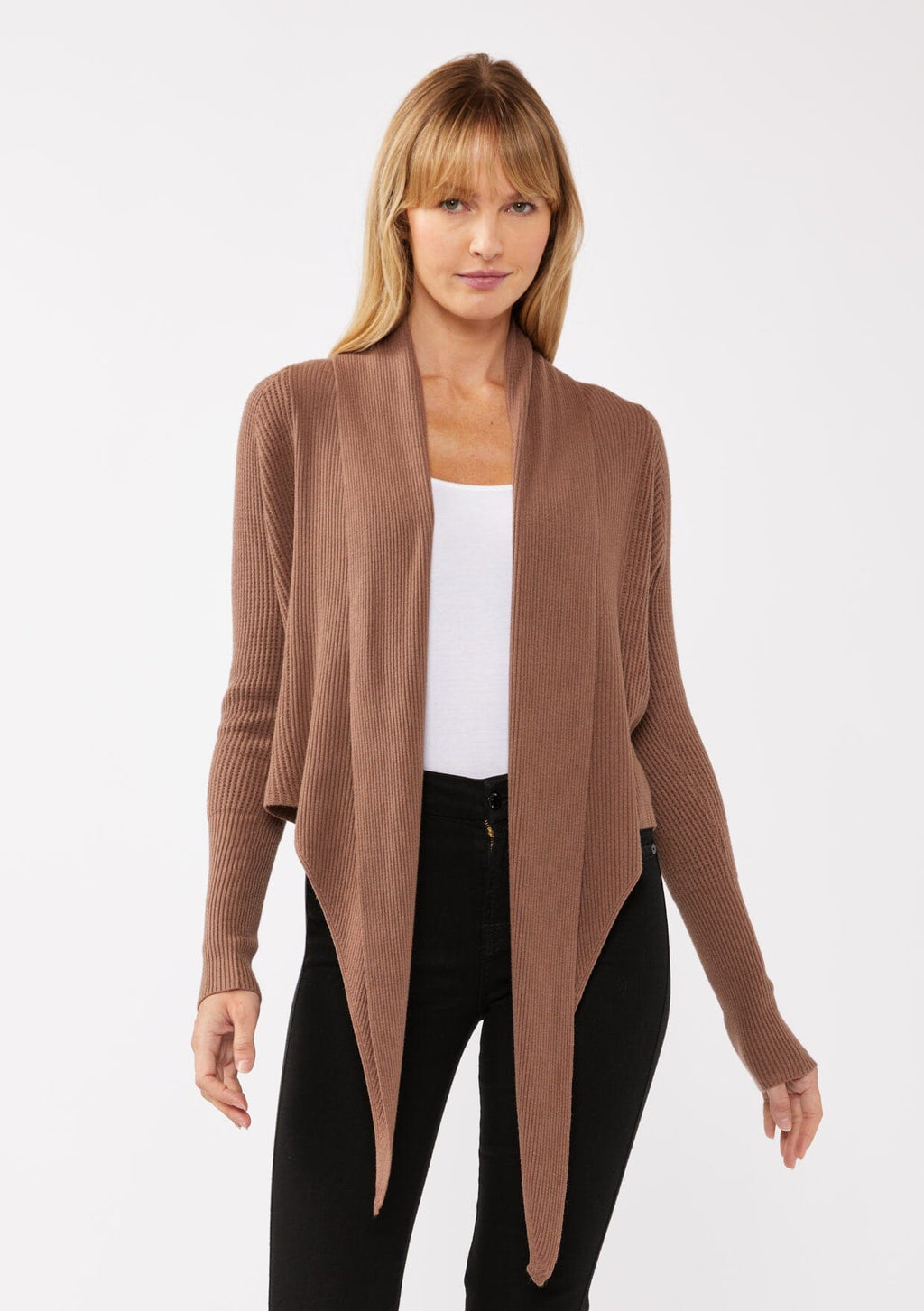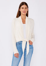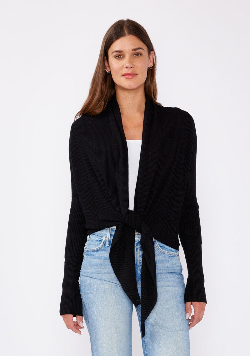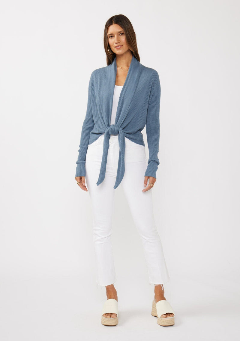 Tie it, wrap it, or let it hang loose - our versatile tie-front sweater can be styled in multiple ways. Designed in an ultra-soft waffle knit with contrast ribbed trim, this must-have cardigan features slim-fit long sleeves and extra-long front ties with an optional button closure at the back. If you're looking for a timeless staple sweater to add to your capsule collection, look no further!